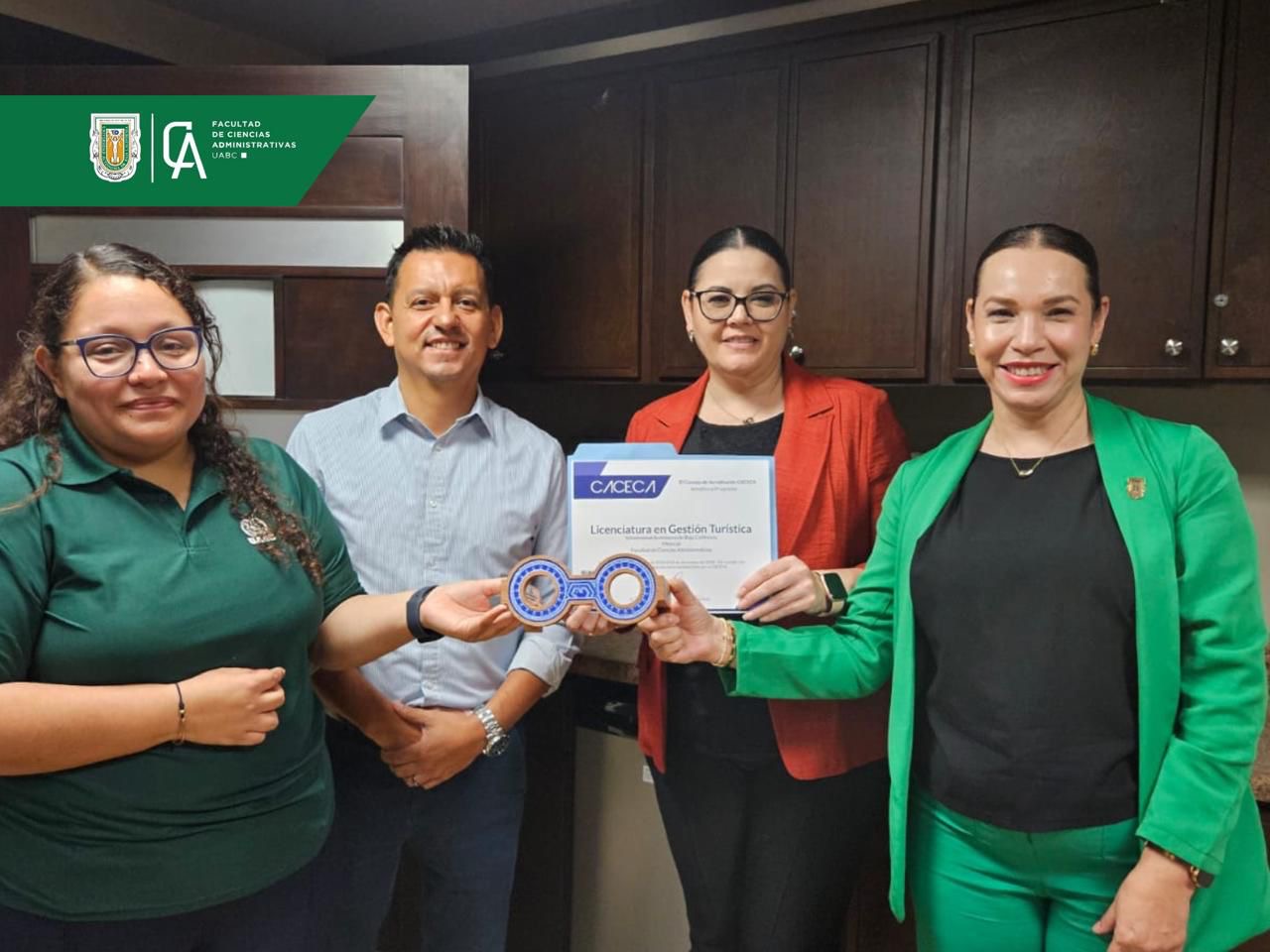 La Licenciatura en Gestión Turística fue oficialmente reacreditada por el Consejo de Acreditación en Ciencias Administrativas, Contables y Afines (CACECA), para el periodo comprendido del 4 de diciembre de 2024 al 4 de diciembre de 2029. La entrega del reconocimiento fue realizada por la directora del plantel, Dra. Sósima Carrillo, en un acto que simboliza el compromiso institucional con la calidad educativa.